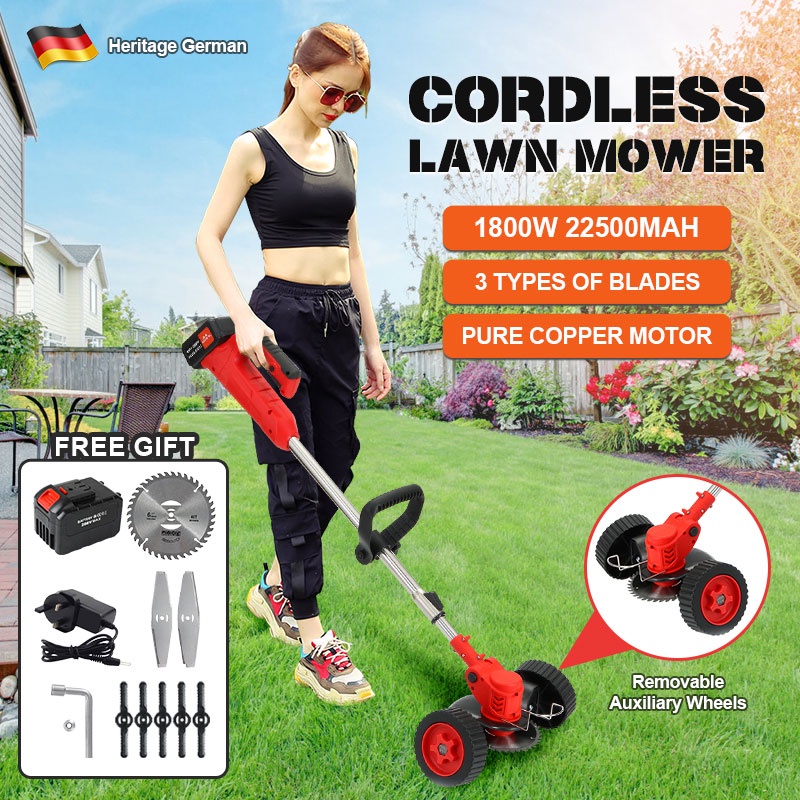 Mesin Rumput Bateri Grass Cutter Electric Grass Trimmer Lawn Mower Cordless Pemotong Rumput Portable Roda Mesin Rumput Shopee Malaysia
